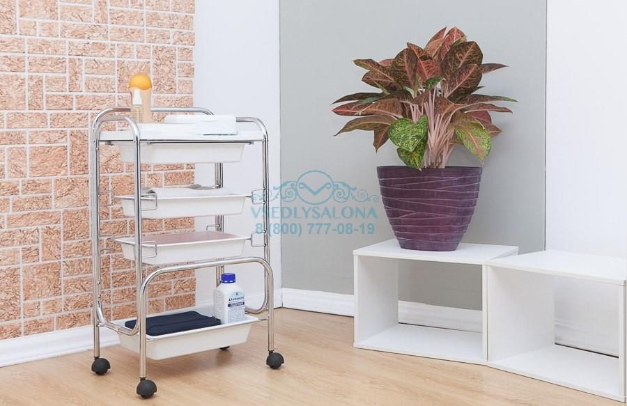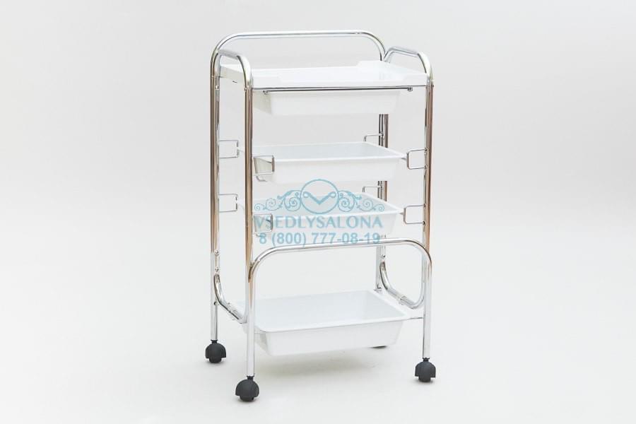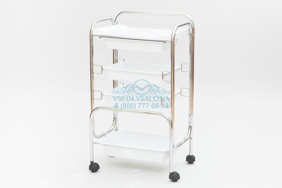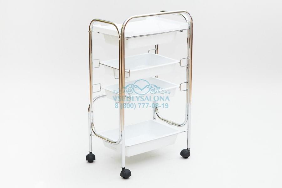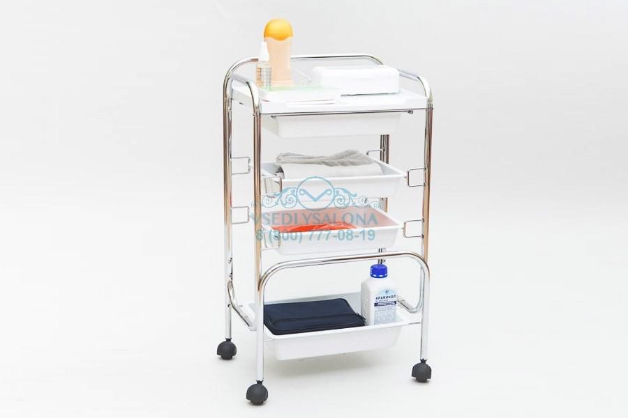 Универсальная тележка косметологическая на колесах с четырьмя ящиками различной глубины.