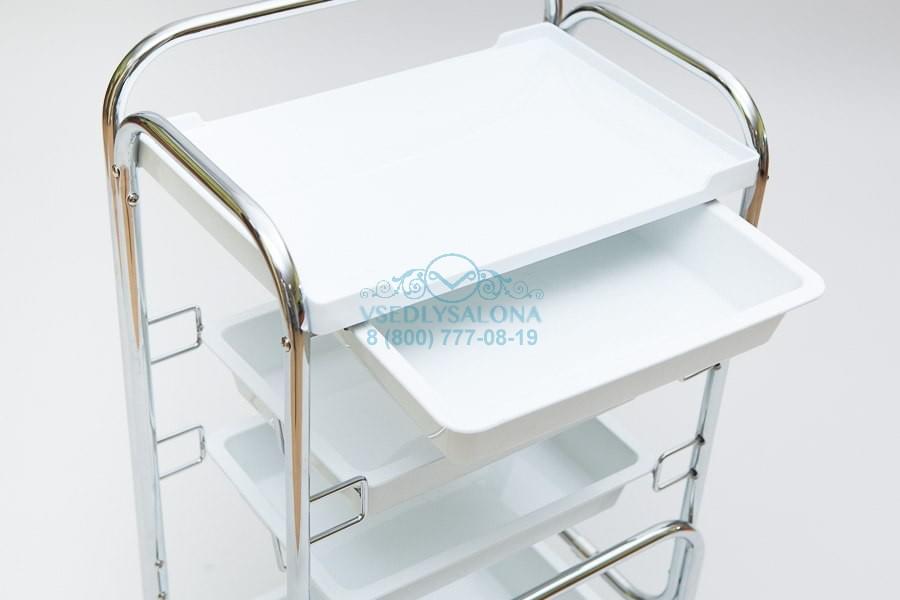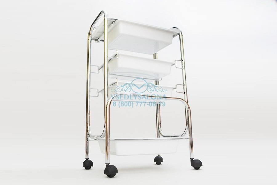 Каркас тележки хромированный металл, полки – пластик.