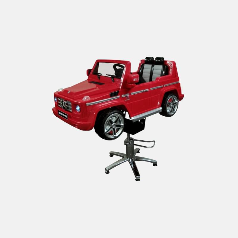 Детское парикмахерское кресло класса VIP Мерседес Гелендваген на гидравлике. Цвет красный, белый, черный.