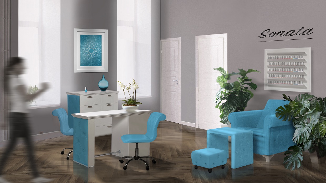 Парикмахерский комплект «Соната» позволяет полностью обустроить салон красоты. В комплект входят предметы для оснащения парикмахерской зоны - парикмахерское кресло, мойка с креслом, детское кресло, одностороннее зеркало. Кроме этого, в комплект входит диван для холла и стойка администратора. Также производитель предлагает обустроить зону педикюра и маникюра. Возможно приобрести входящие в комплект полку под лаки, комод, маникюрный стол с вытяжкой, кресло для клиента маникюра, педикюрное кресло, подставку для педикюра, стул для мастера, пуф для мастера.