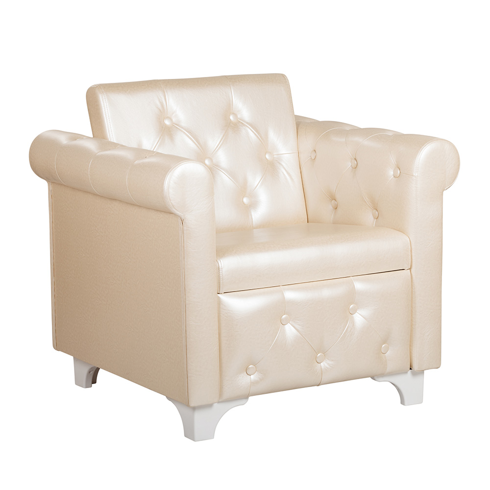 Обивка выполнена из искусственной кожи и украшена каретной стяжкой. Под заказ возможно изготовление в любом цвете из представленных в каталоге.