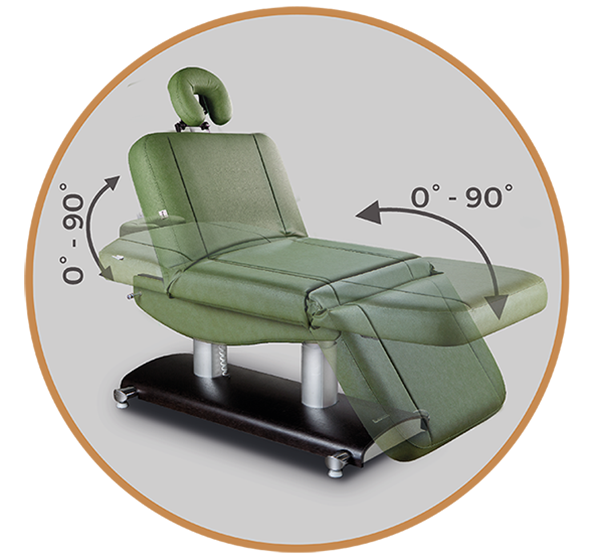 Универсальная многофункциональная кушетка "VERONA" - для массажа и SPA процедур для лица и тела, способна обеспечить максимальный комфорт. Кушетка оснащена четырьмя электромоторами, с помощью которых регулируются высота, наклон спинки, ножной части, угол наклона кресла (тренделенбург), регулировки осуществляются за счет ручного пульта управления. Система полной электрической регулировки делает кушетку "VERONA" идеальным решением для профессионалов, стремящихся создать комфортные условия работы. Наличие четырех электроприводов позволит подобрать наиболее удобное положение и высоту, позволяя клиенту садиться в кушетку и вставать с нее без особых усилий.