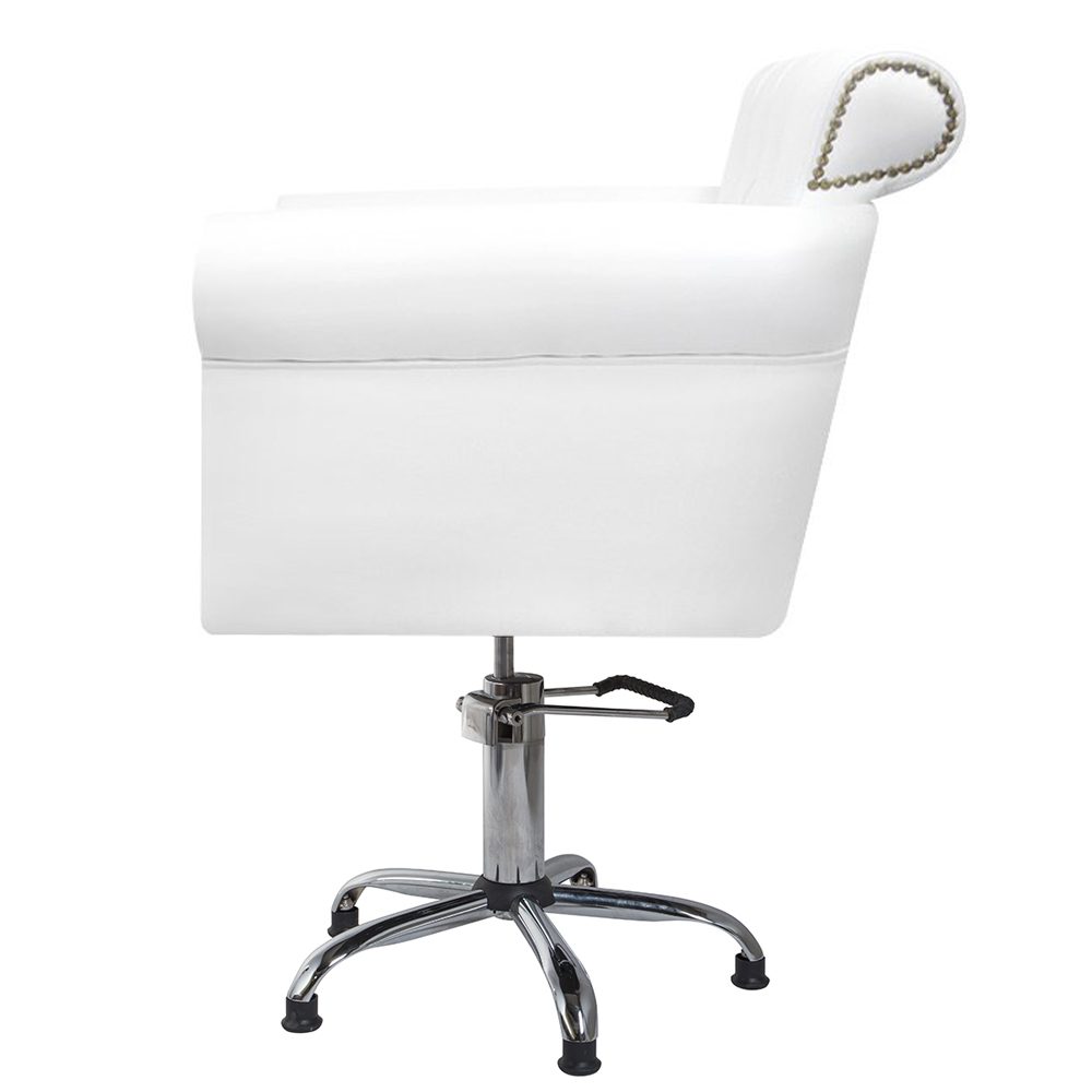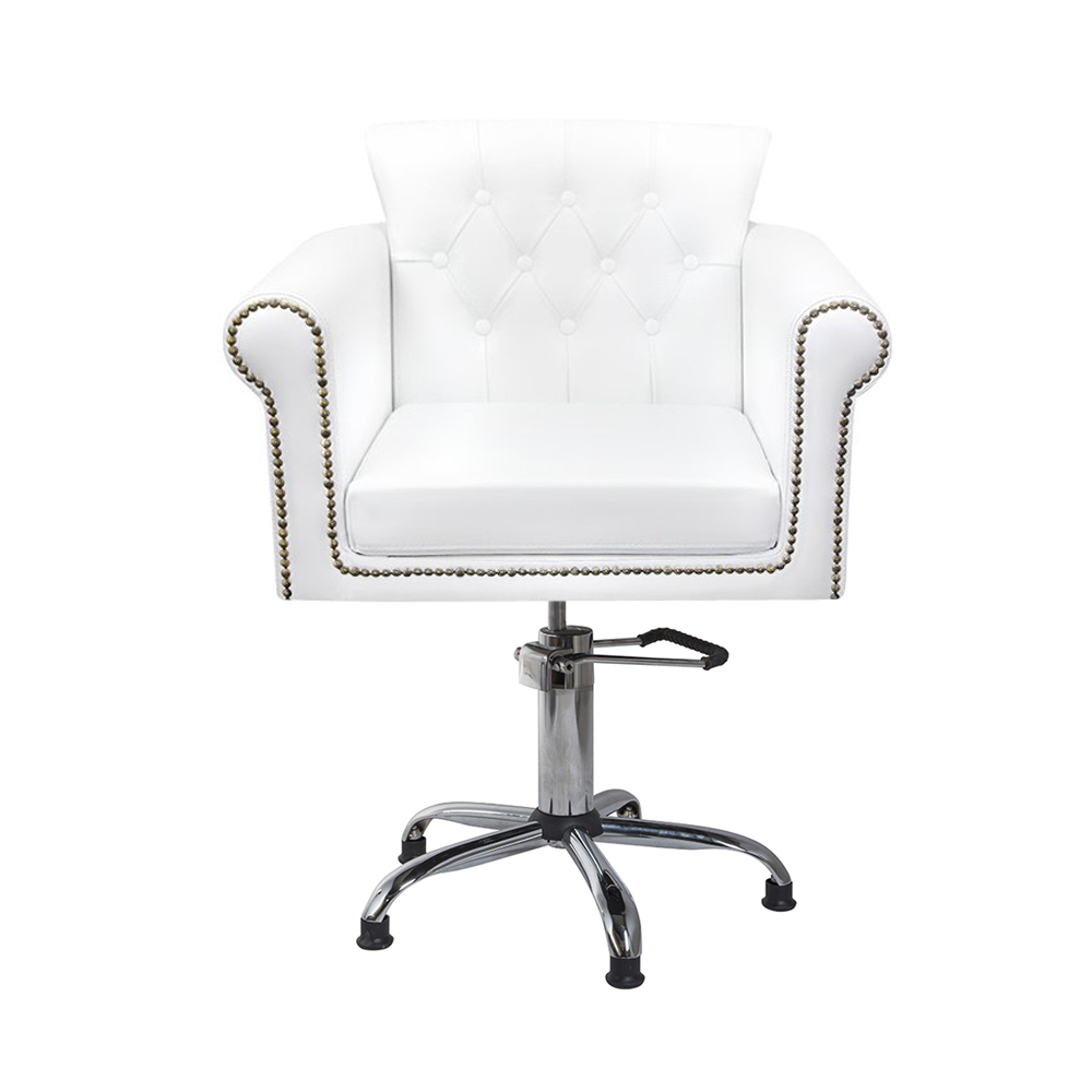 Парикмахерское кресло выполнено из высококачественного поролона, каркас обтянут искусственной кожей, мягкие кожаные подлокотники. Комплектуется стационаром, гидроподъемником с основанием на выбор: пятилучье, диск, квадрат. Обрамление мебельными гвоздями придает неповторимый шарм.