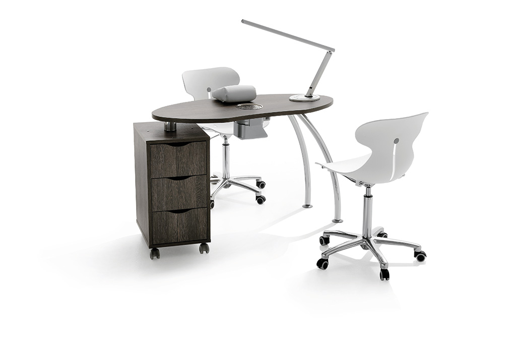 Стол "NAIL BRIO EASY" маникюрный – это универсальная модель, которая позволяет создать грамотно организованное пространство со всем необходимым для работы. Стол комплектуется комодом на колесиках, с другой стороны столешница опирается на ножки из хромированной стали с антискользящими насадками. Каркас и столешница выполняются из натурального дерева. Дополнительная комплектация включает в себя светодиодную лампу с широкими возможностями регулировки, вытяжку, подушку под кисть, стул. Столешница имеет продолговатую форму, позволяющую разместить на ней все необходимые во время работы средства и инструменты.