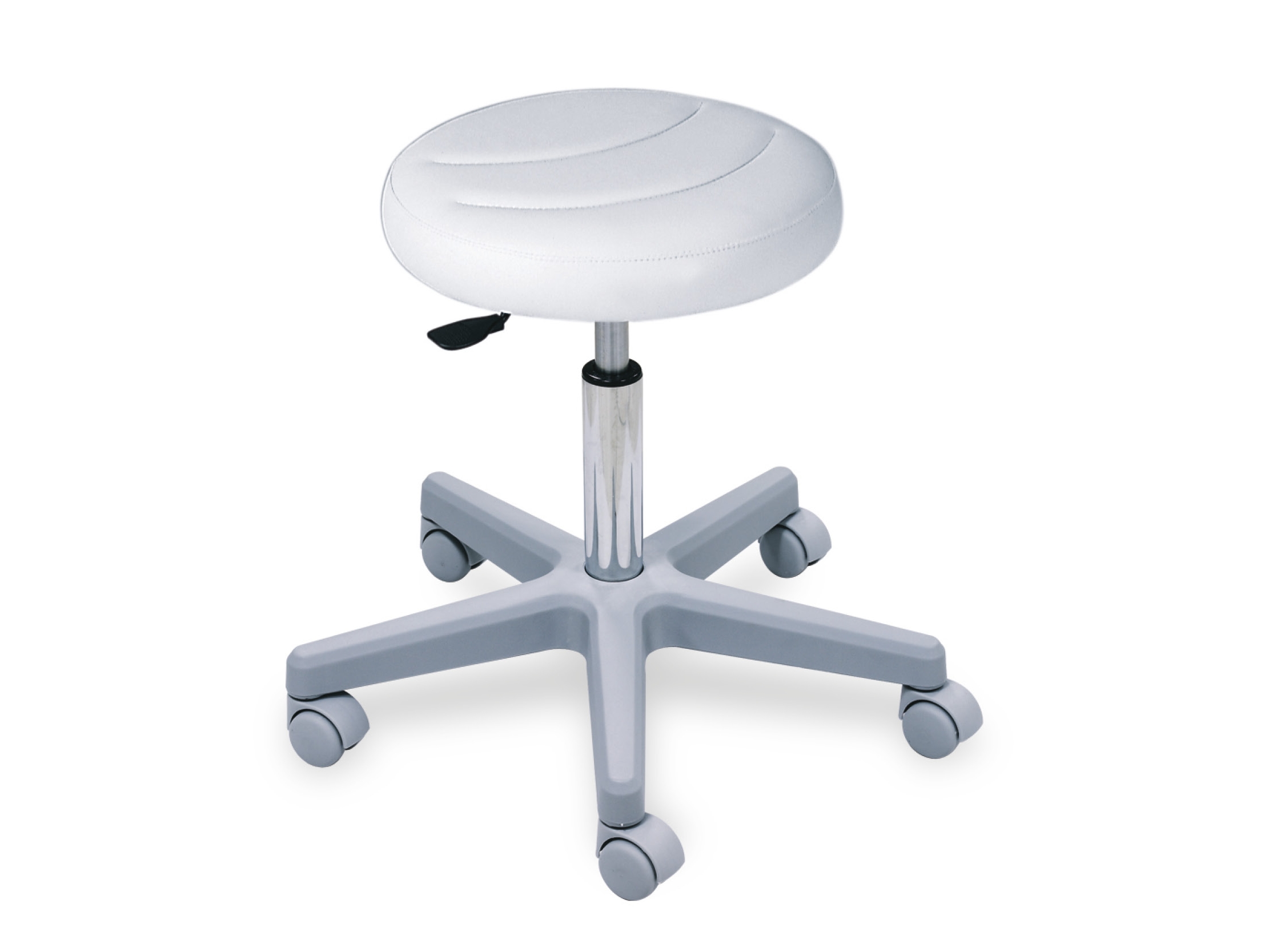 Оснащен пластиковым пятилучьем на колесах и газлифтом для регулировки высоты.