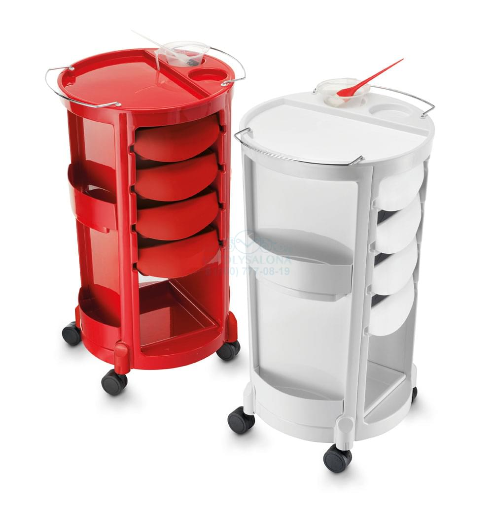 Тележка парикмахерская, выполнена из пластика, на колесиках, с выдвижными ящиками. Цвет: черный, серый, красный, белый. Размер (ДхШхВ): 49х49х88