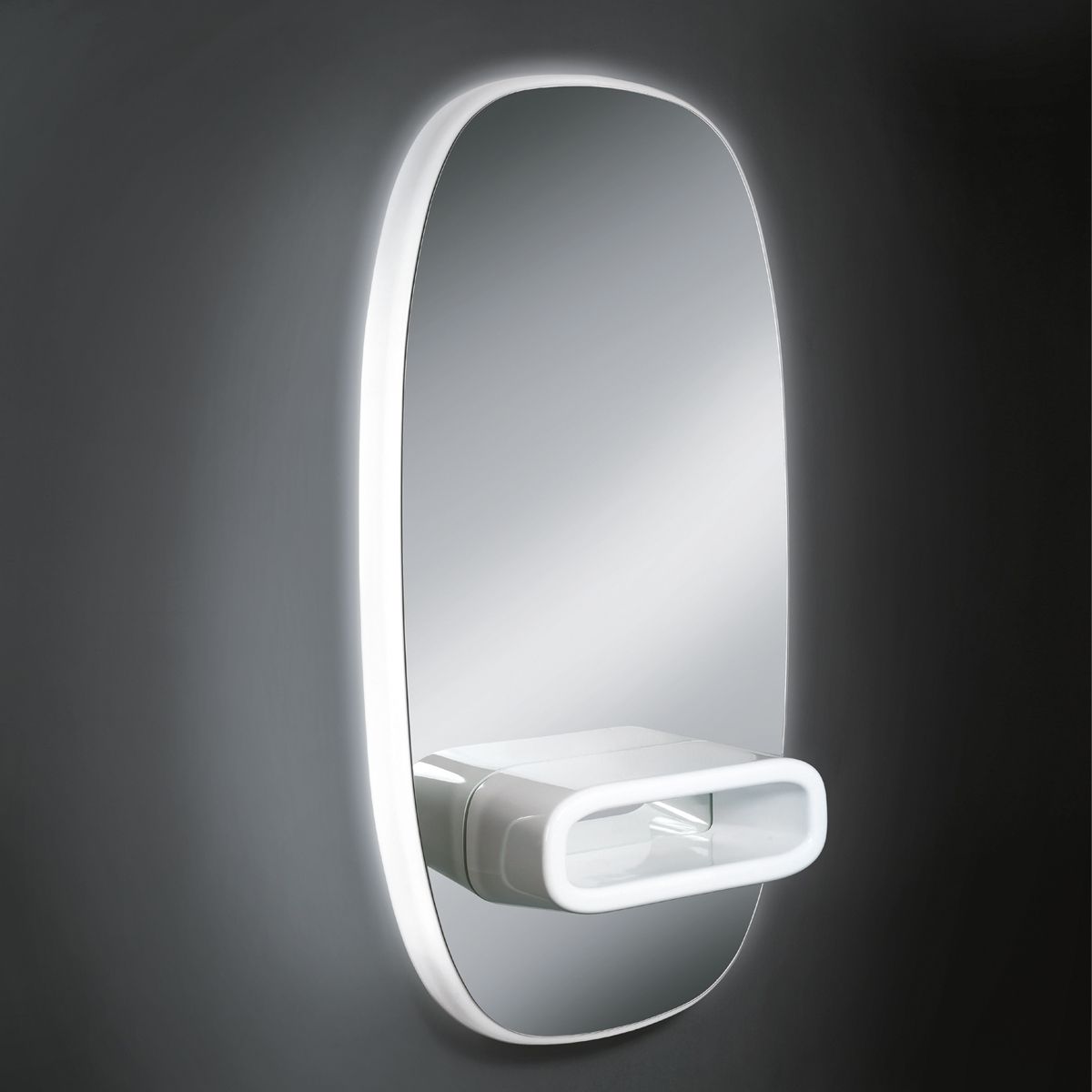Зеркало парикмахерское "HUMAN Wall" - округлой формы. Зеркало оснащено мягкой подсветкой и столешницей белого цвета. Крепление к стене.