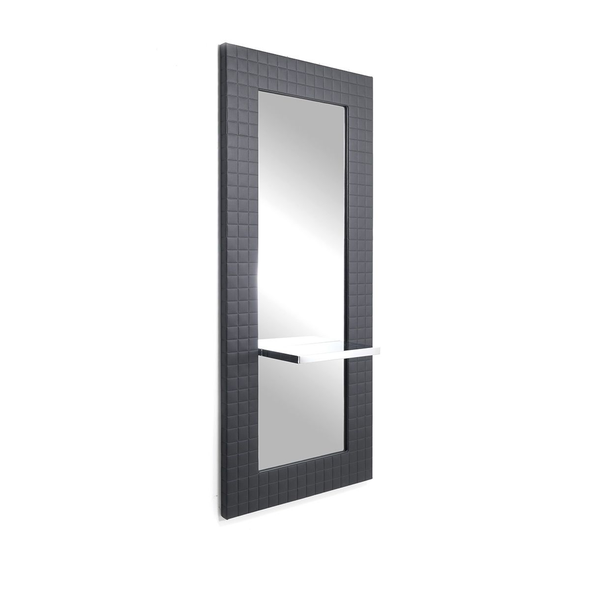 Зеркало парикмахерское "Matelassé" - прямоугольной формы. Рама зеркала выполненна в стеганной исскуственной коже черного цвета (SKAI NERO CPT). Зеркало оснащено столешницей из нержавеющей стали. Крепление к стене.