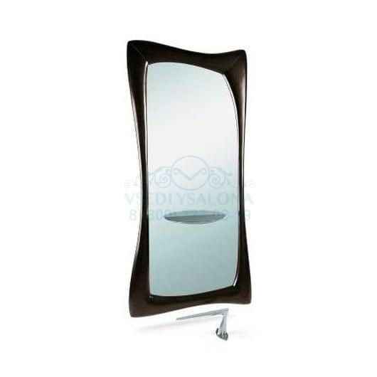 Зеркало парикмахерское, одностороннее, крепление к стене. Металлическая хромированная столешница и подставка под ноги, рама из дерева. Размер: 210х100х29